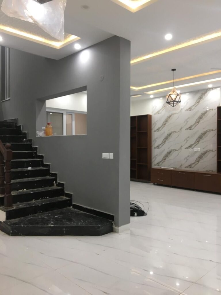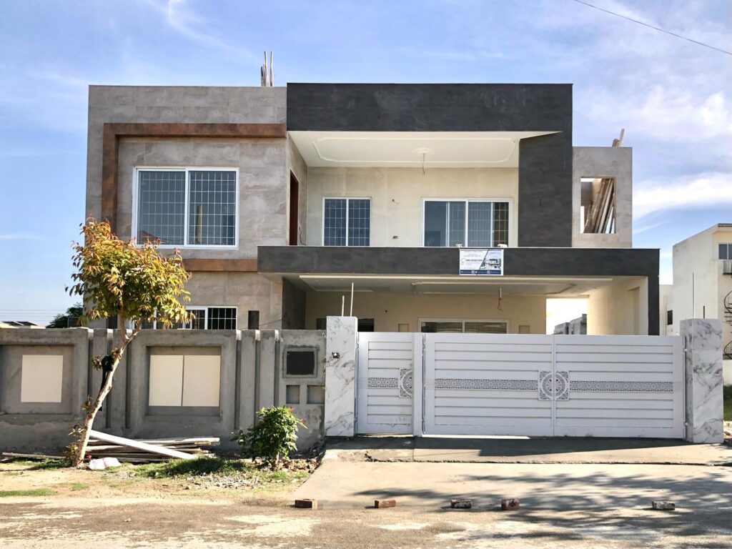Our client, an overseas Pakistani from the US, desired a modern and elegant residence that invites openness and vibrancy. We meticulously designed it to enhance comfort through thoughtful design strategies. The layout emphasizes spaciousness and natural airflow, fostering an environment that feels expansive and rejuvenating. Positioned on the northern side, the front windows are strategically placed to capture the morning sunlight, filling the space with invigorating and beneficial natural light.
